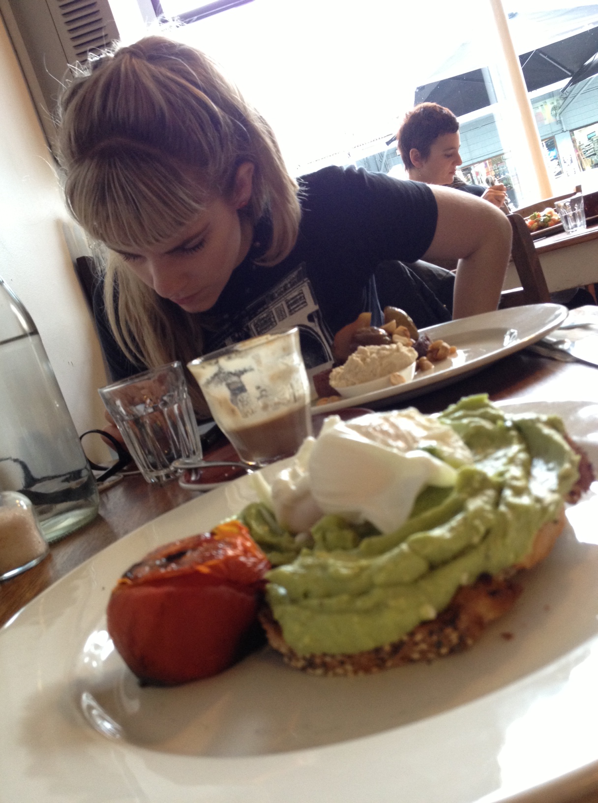 I’m not lying when I say Shifty Chevre is a cheese lover’s heaven. There is everything you could want, including cheese, wine, coffee, attractive wait staff, a sunny courtyard, and my hot friends. Depending on your mood, you could take the traditional route and order a cheese board that comes with crackers and fruit paste (boring), or in a defective state such as mine, you could order the most fancy fucking cheese toastie that has ever graced my cheese-adoring eyes.